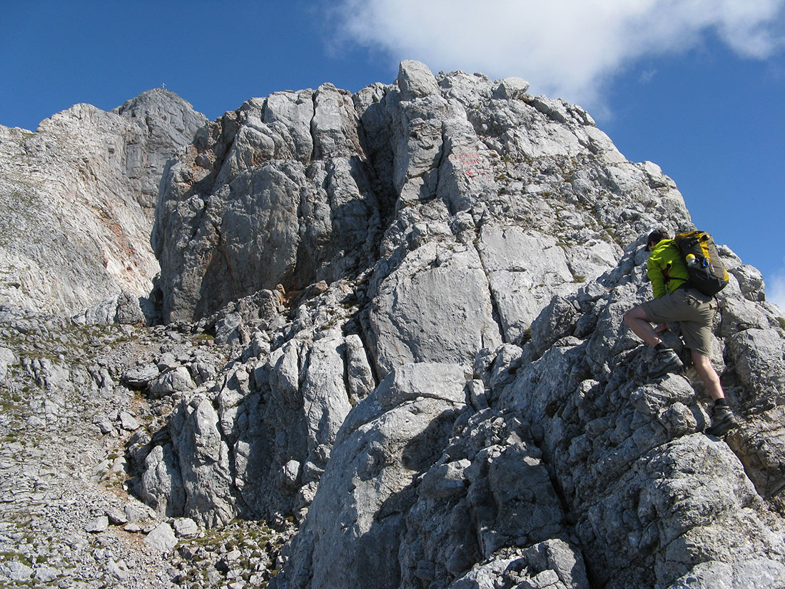 Kurz vor der Weggabelung. Geradeaus direkt über den Vorgipfel-Pfeiler, links herum leichter und deutlich weniger gefährlich, wie die nächsten Bilder zeigen werden.