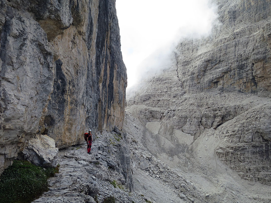 | Ein letztes Band noch rauslaufen und nach 3h ist der Spaß auch schon zu Ende. Eigentlich wäre der Weg anders herum besser zu gehen, weil ein paar ungesicherte Übergangspassagen im Aufstieg angenehmer sind, aber die Hauptströmung geht von Nord nach Süd. Wer wenig Gegenverkehr haben will, macht es besser so. | |