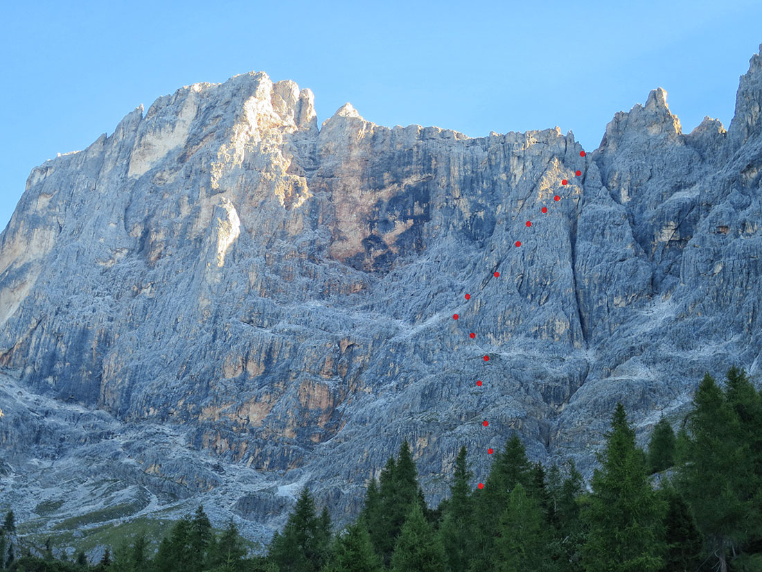Die Via Ferrata Bolver Lugli ist ein klasse Klettersteig. Er folgt einer alten Kletterroute im dritten Grad und ist dadurch elegant und nicht krampfig in den Fels geknallt. Der Fels ist im Mittelteil herrlich griffig und fest. Der Abstieg ist recht lang und wartet zum Schluss noch mit rassen Passagen auf, wenn man die Abkürzung nimmt. | ![]() |