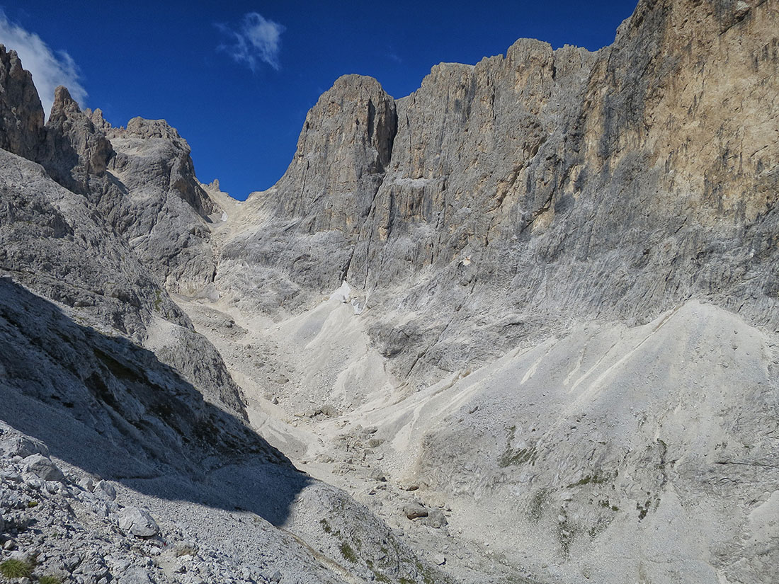 Blick zurück. Von der Scharte kommt der Weg herunter.