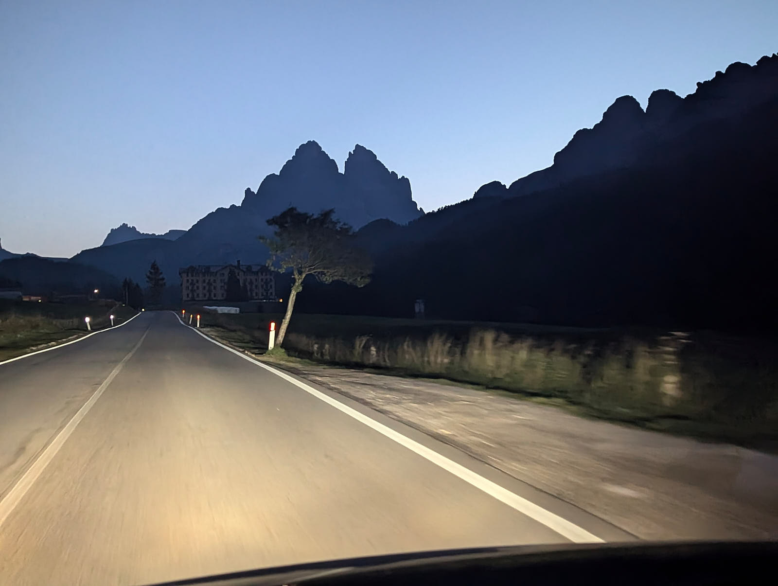 Unterwegs zum Treffpunkt an der Abzweigung zur Auronzohütte um 6 Uhr. Früh aufstehen sollte sich sehr lohnen heute.