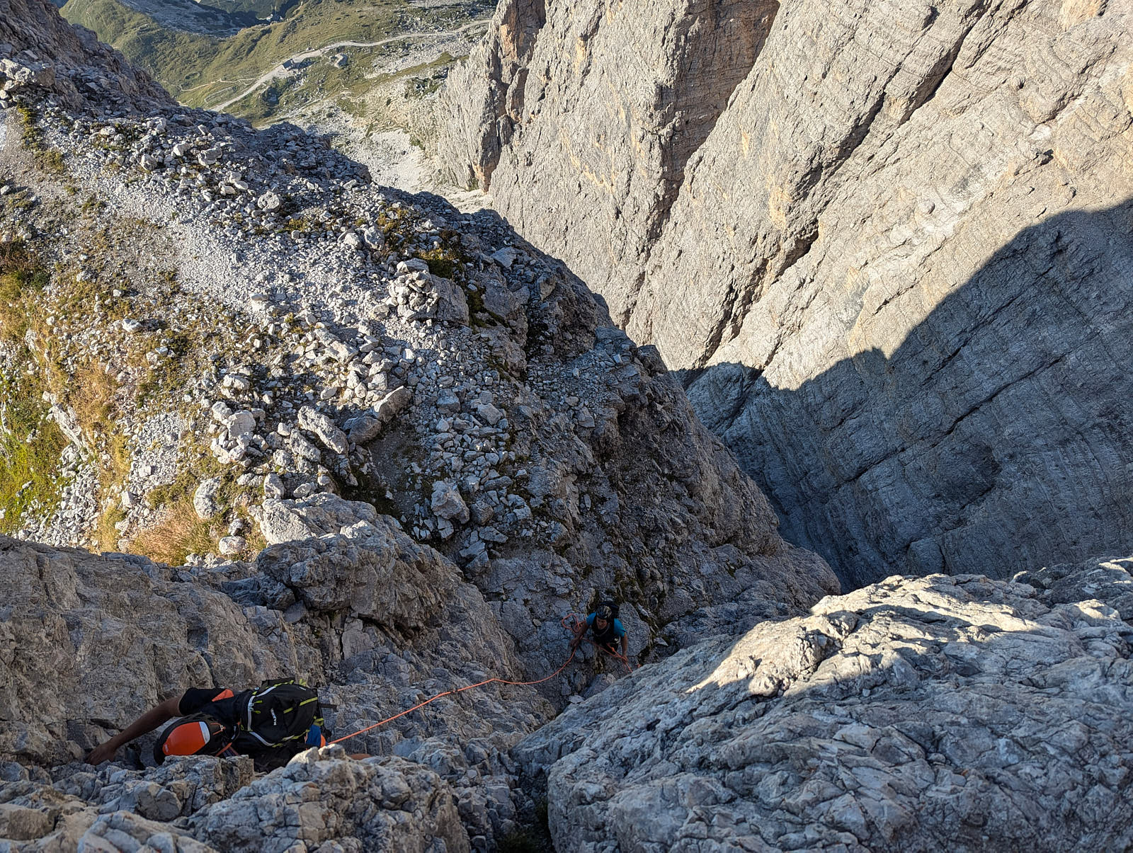 Der Quergang im mittleren Teil geht um ein etwas fieses, abdrängendes Eck herum.