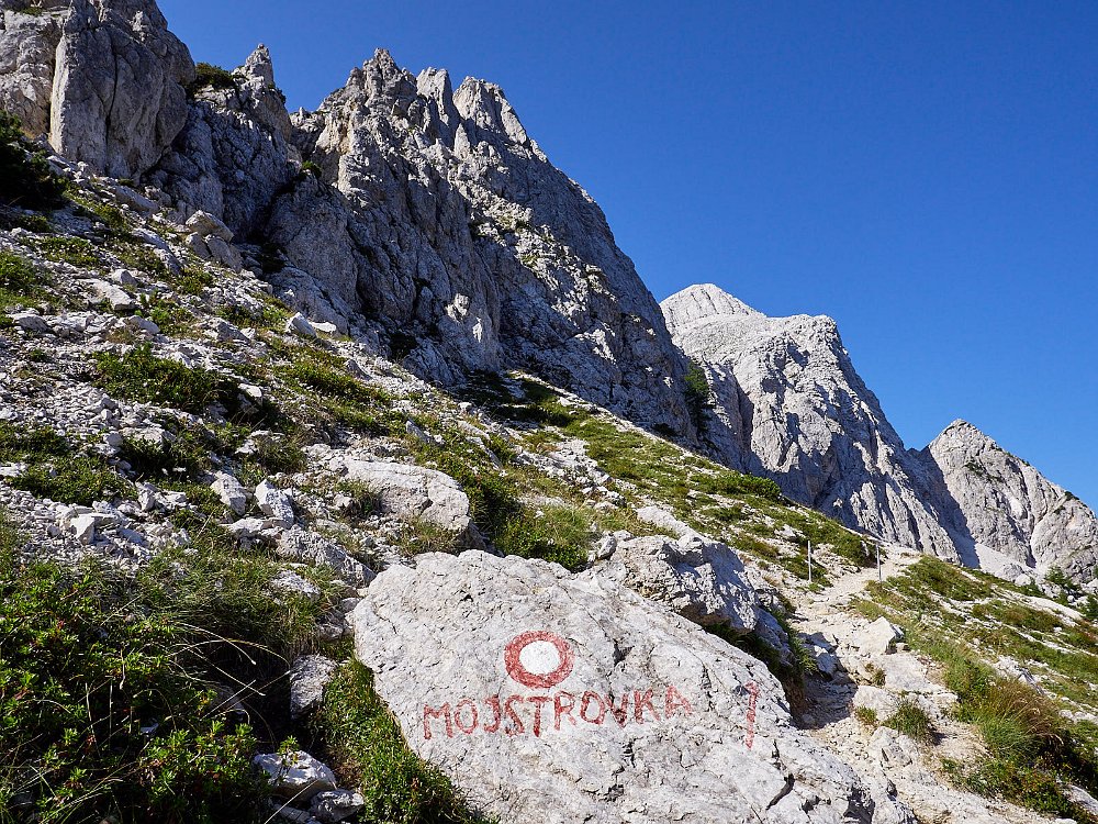 Prisojnik direkt gegenüber, dahinter spitzt der Razor raus. Und natürlich ganz hinten der charakteristische Kegel des Triglav.