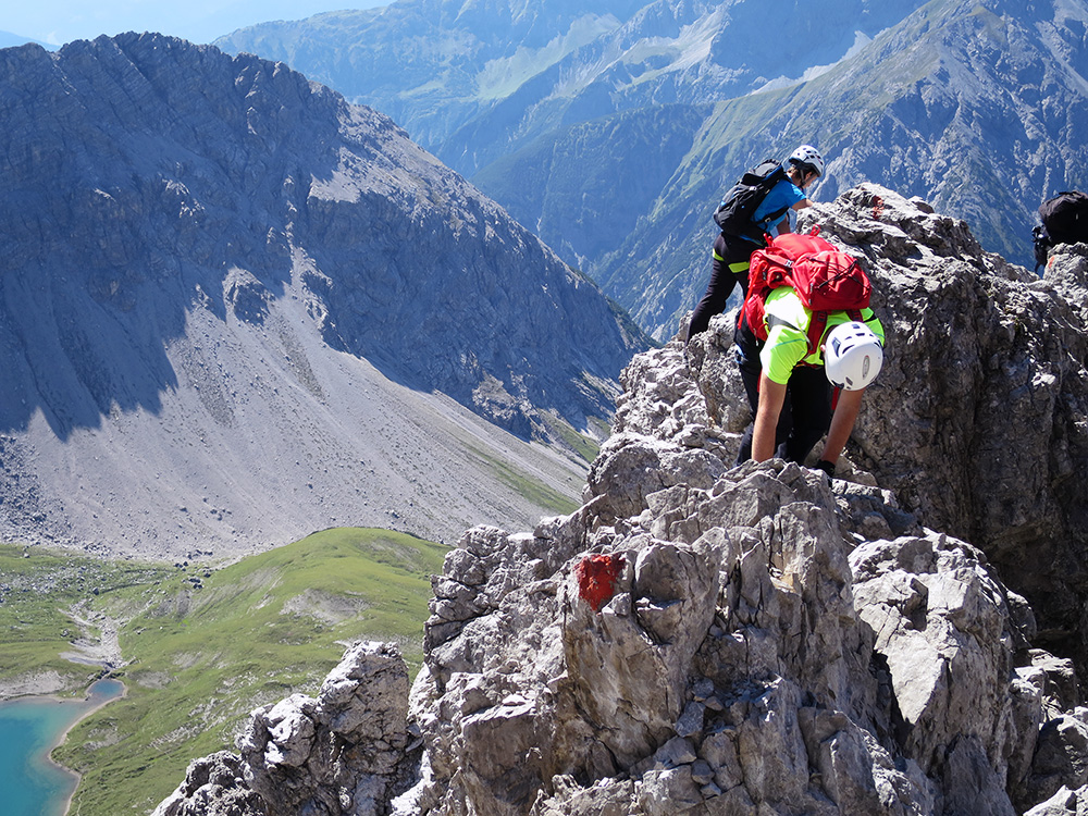 Und den Spaß wieder zurück. Hier muss man einen luftigen Grat überschreiten.