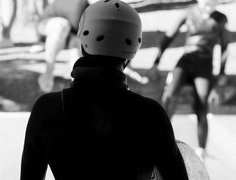 Helden und Gummi-Amazönchen an der Thalkirchner Surfwelle.