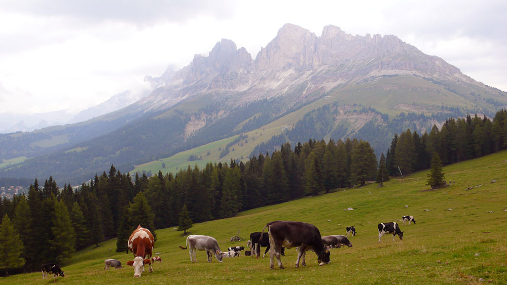 Idylle auf den Latemarwiesen. Im Hintergrund das Rosengartenmassiv. Für den Alpengeist gibt es nichts Entspannenderes als auf einer Almwiese zu liegen.