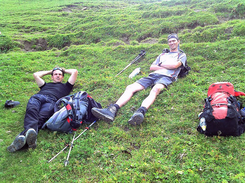 Letzte Rast auf dem Scharnitzjoch bei der Gehrenspitze. Es folgen noch 1000Hm Abstieg. Die Haxen sind bereits reichlich schlapp.