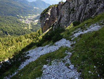 Eine ruhige und wunderschöne Tour von der Haustüre weg! Auf der Tabacco-Karte führt durch das Val de le Ziolere nur ein schwarz-gestrichelter Pfad. Das sind die interessantesten! Zuerst geht es durch einen schönen Waldpfad zur verfallenen Casera de Righes. Von dort weg muss man seinen Geländeinstinkt einschalten und genau schauen. Markiert ist da nichts und ich habe einige Steinmänner aufgefrischt. Ein absoluter Geheimtipp!