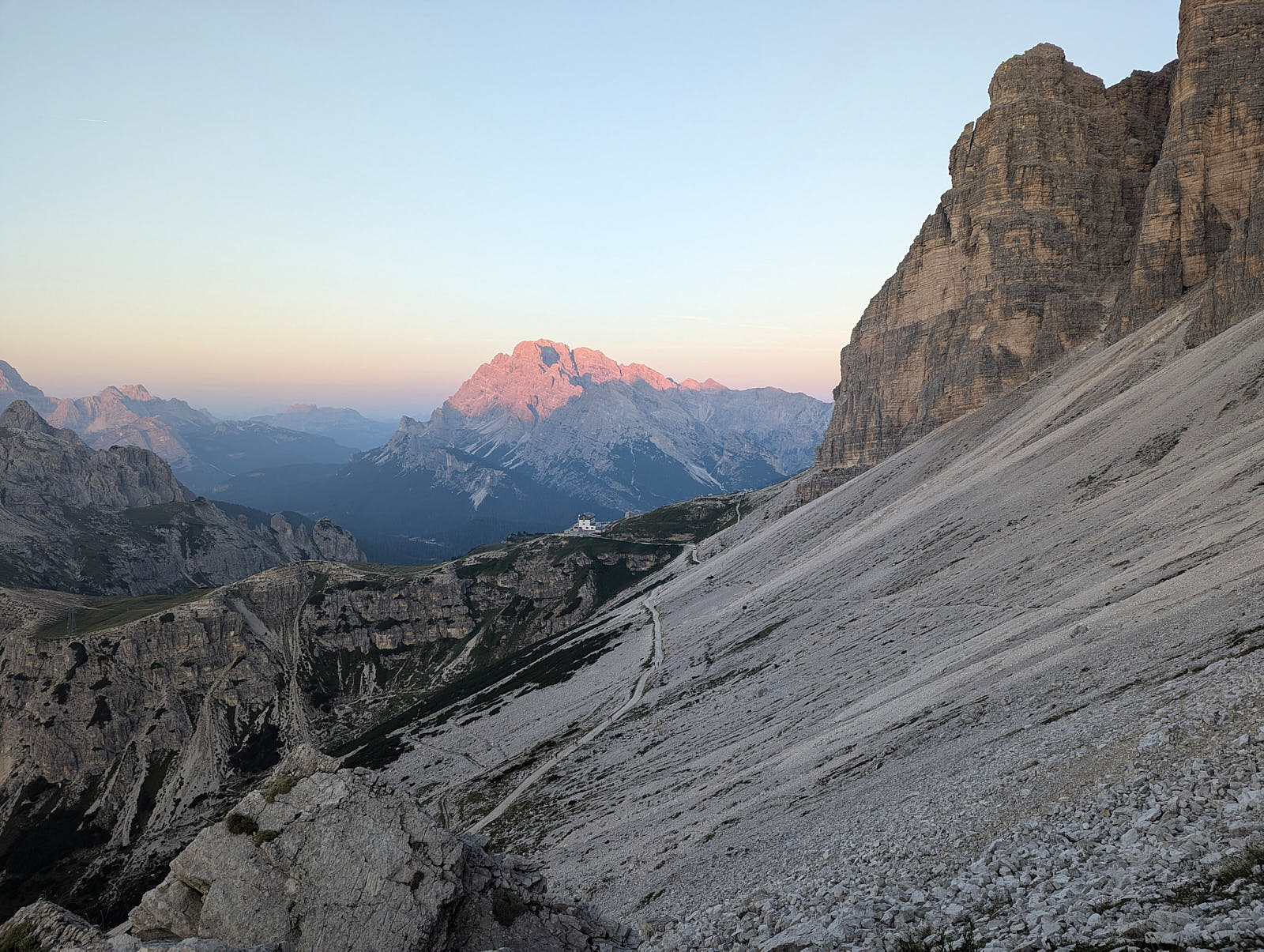 Unterwegs zum Treffpunkt an der Abzweigung zur Auronzohütte um 6 Uhr. Früh aufstehen sollte sich sehr lohnen heute.