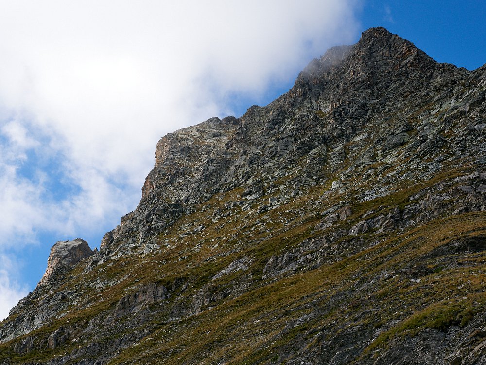 Die Rippe hoch und dann führt ein geschickt gelegter Weg über die Flanke und den Grat auf den Gipfel. Sehr spannend.