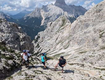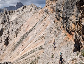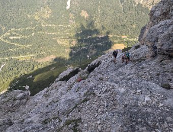 An der Forcella Negra vorbei, die im oberen Teil mit einem verlockenden Pfad zum Abstieg verführt. Der endet aber unten komplett in der ausgewaschenen Scheiße.…