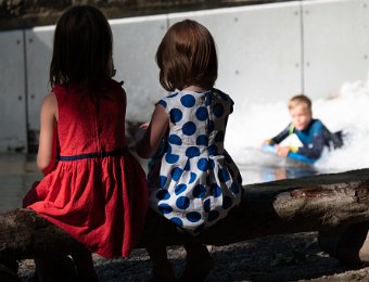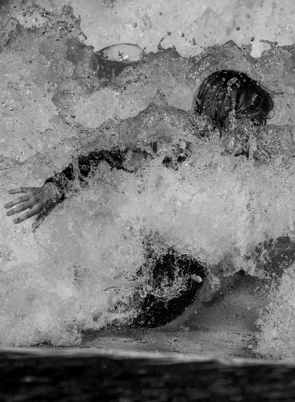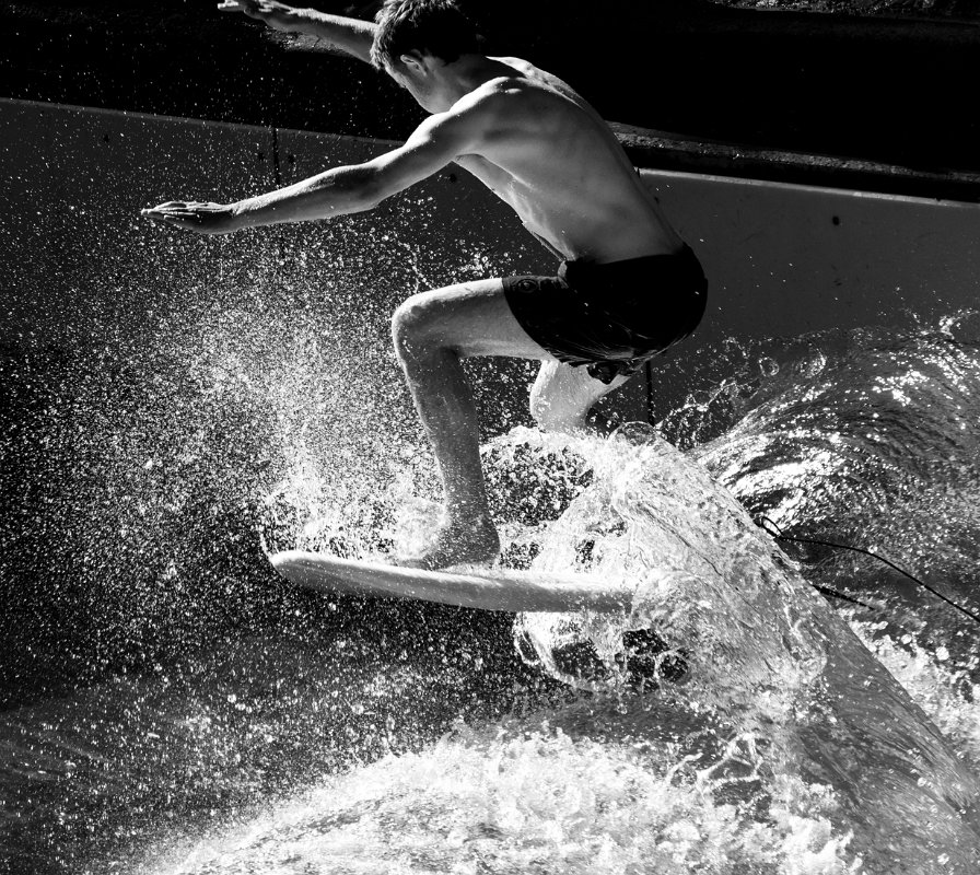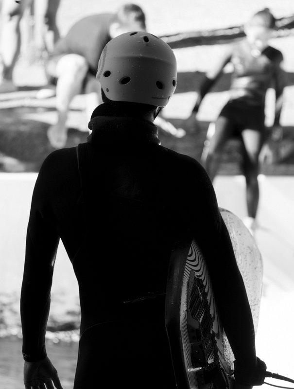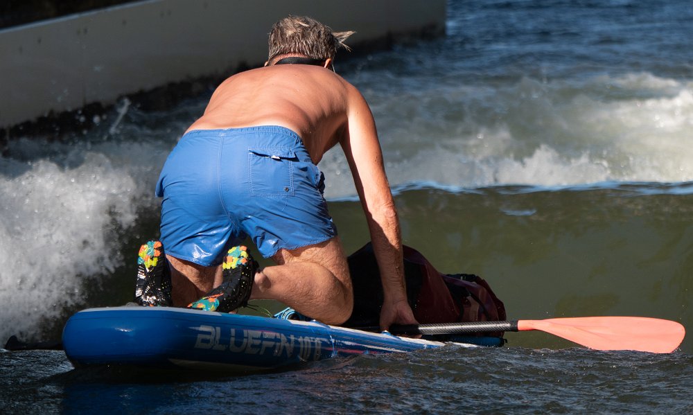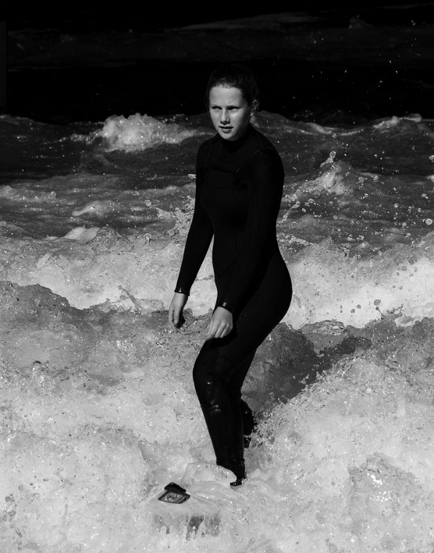 Helden und Gummi-Amazönchen an der Thalkirchner Surfwelle.